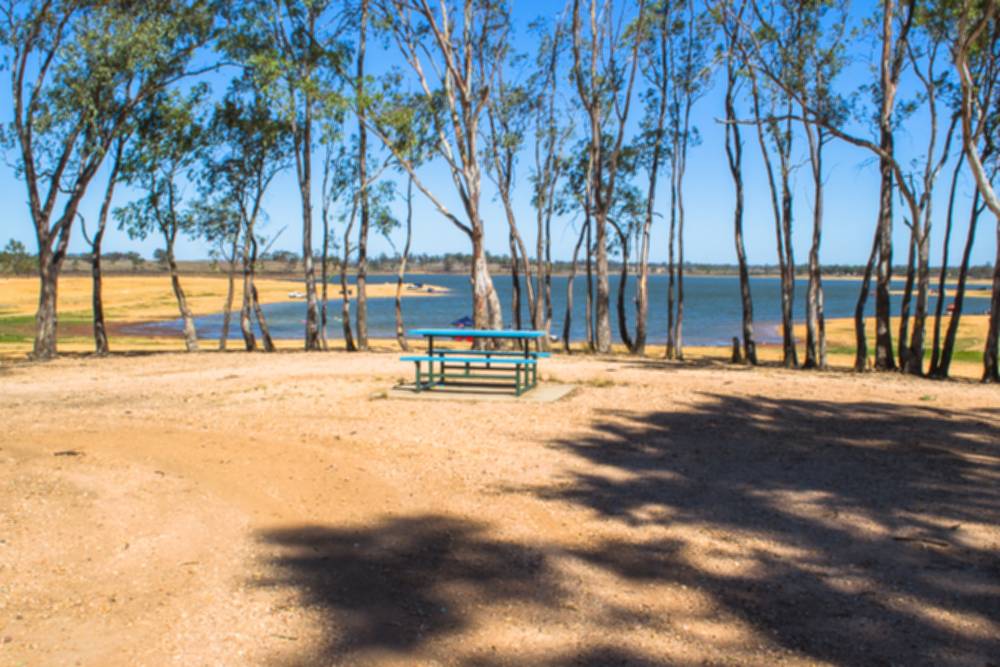 Lake Eppalock. There is a picnic table alongside the parking area which overlooks the water.