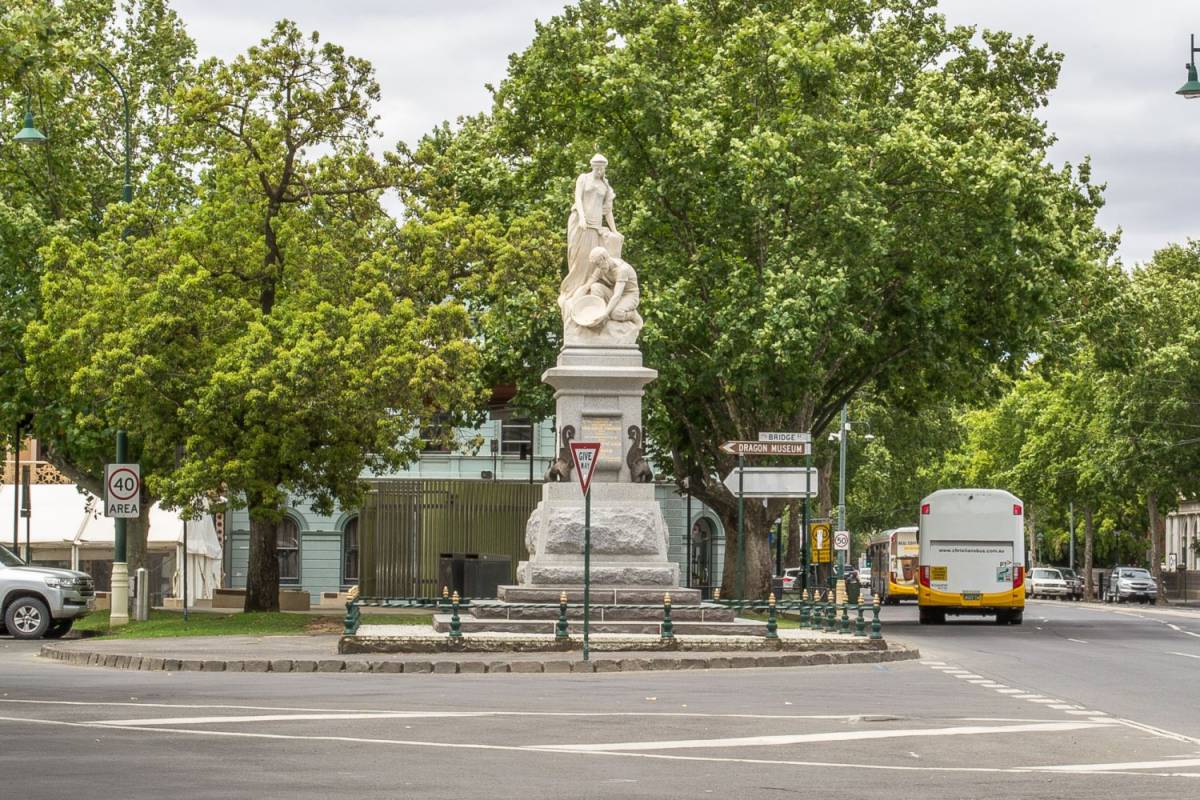 One of the largest marble sculptures in the state, Bendigo's Discovery of Gold Monument stands as a proud commemoration of the 1851 discovery of alluvial gold in Bendigo Creek by Mrs Margaret Kennedy.